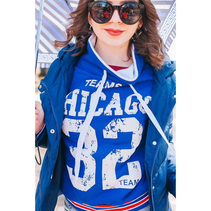 Толстовка женская "Чикаго 32", цвет синий, размер 48 (L) (арт. ТЖБК-СТ0001) — выбор стильных людей. Вещь изготовлена из качественных и безопасных материалов, а над дизайном работала команда настоящих профессионалов.