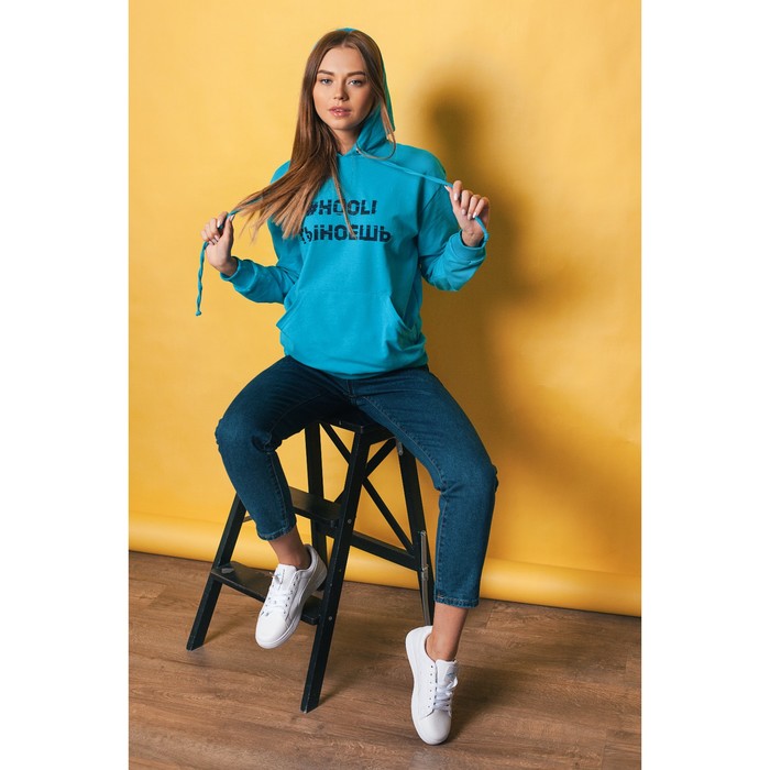 Толстовка женская оверсайз с капюшоном с принтом женская MINAKU, размер 50, цвет голубой