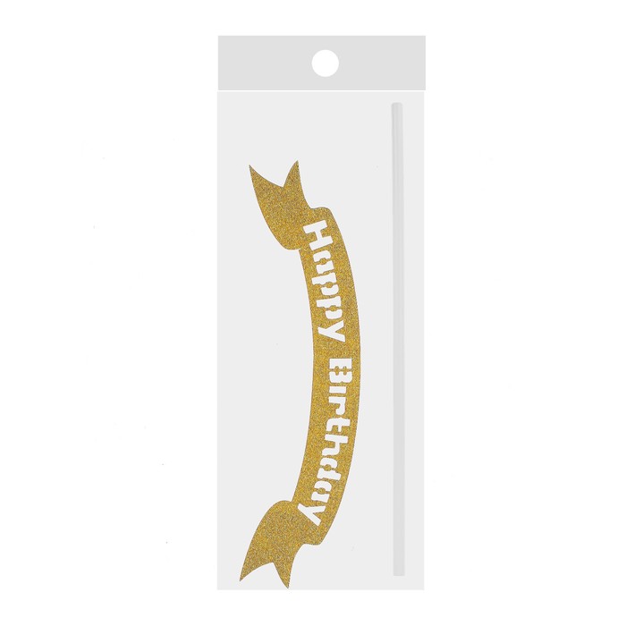 Топпер Happy Birthday надпись на ленте, цвет золото