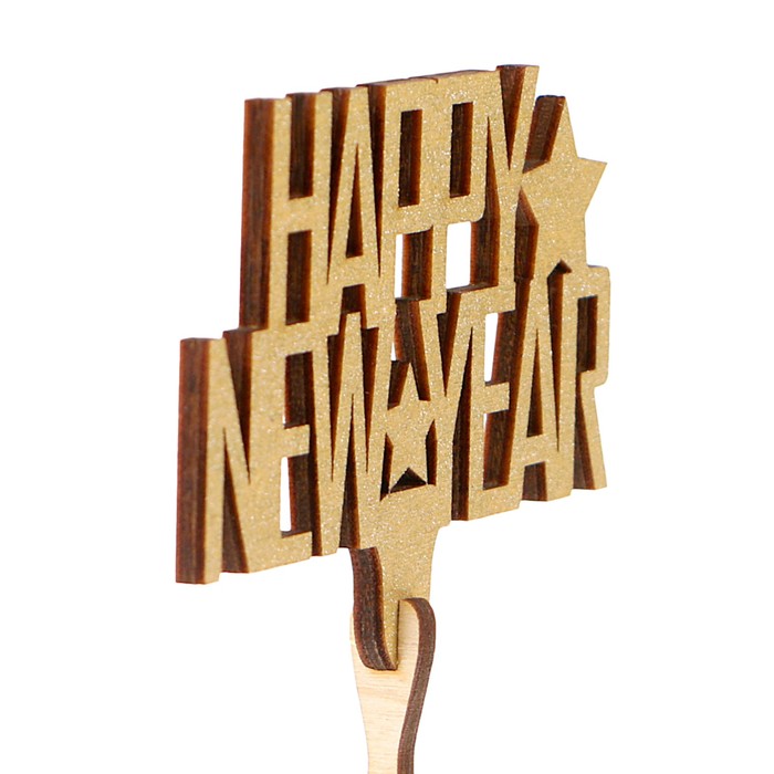 Топпер «Happy New Year звезды«, золотой, 6×9см
