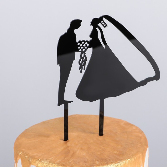 Топпер на торт "Молодожены" 12х12 см, цвет черный