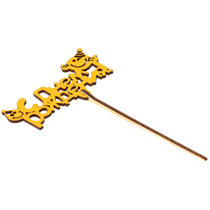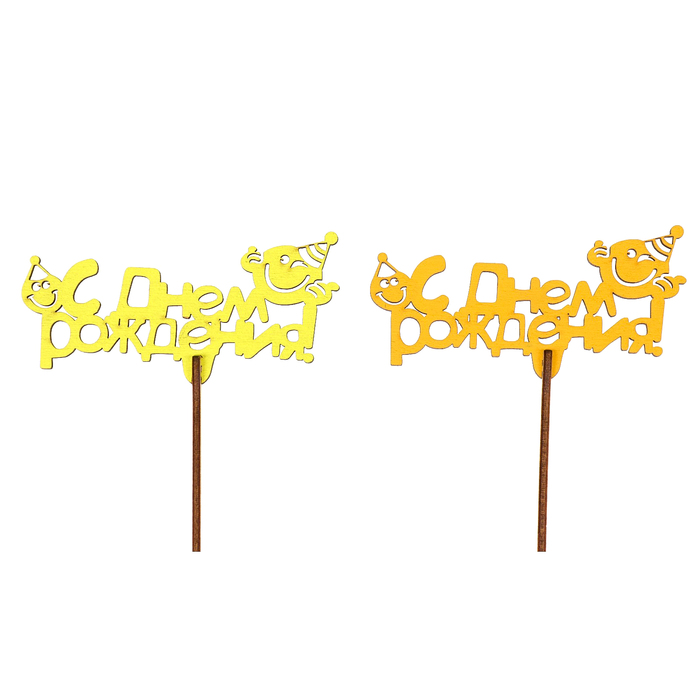 Топпер "С Днем Рождения" 11,5х6 см, жёлтый