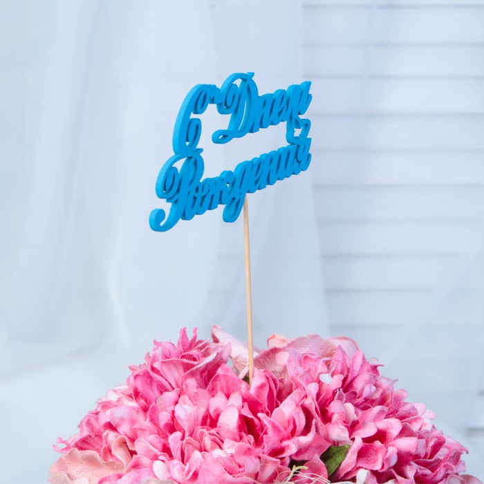 Топпер "С Днём Рождения", 12,5 х 6,5, синий