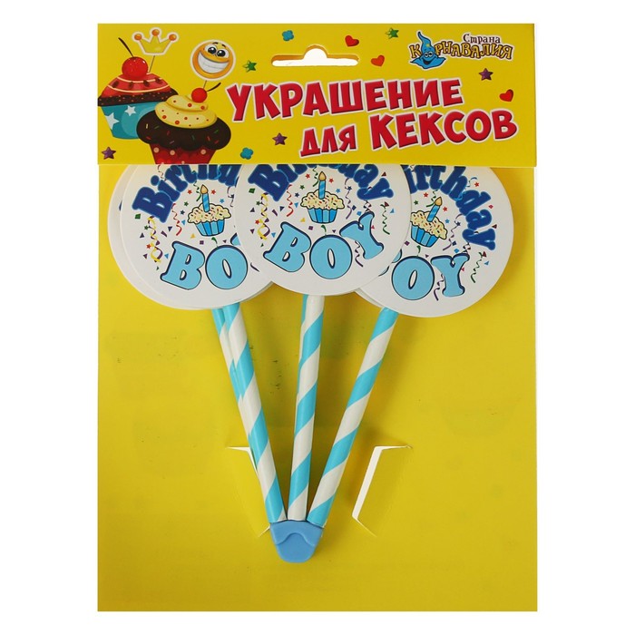 Топпер "С Днем рождения" для мальчика (6 шт на держателе)