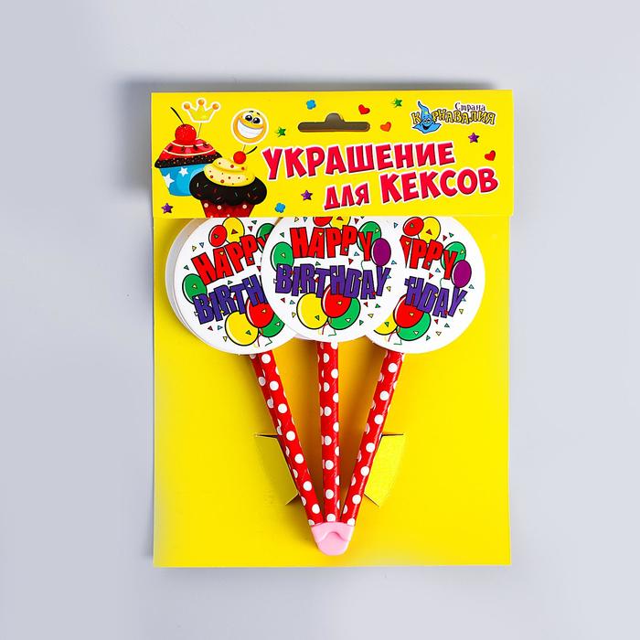 Топпер "С Днем рождения" воздушные шарики (6 шт на держателе)