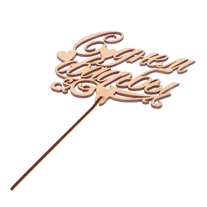 Топпер "С днем свадьбы" из фанеры, 14x9 см