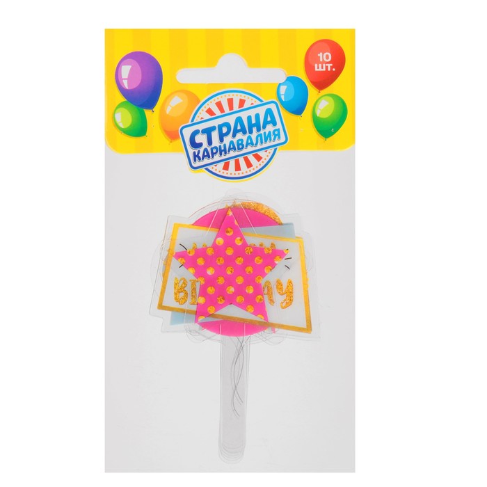 Топпер в торт "С Днём рождения", набор 10 шт.