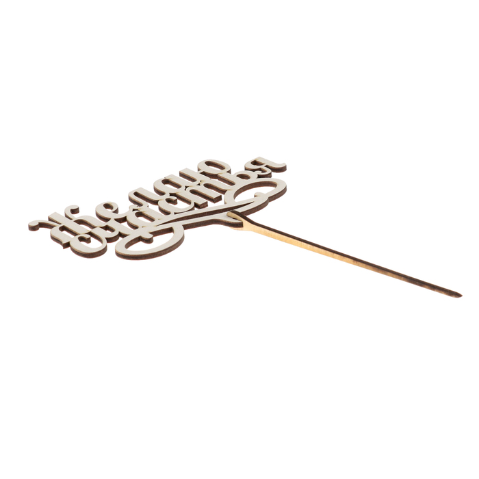 Топпер "Желаю счастья" из фанеры, 14х9 см, белый