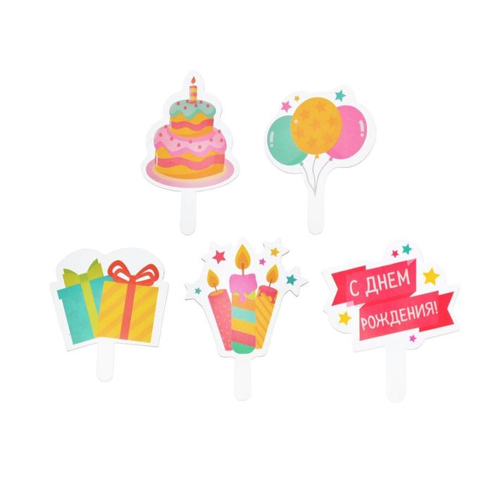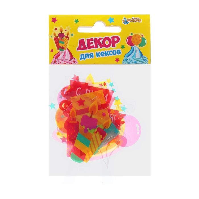 Топперы для сладостей "С Днём Рождения", тортик, набор 10 шт.