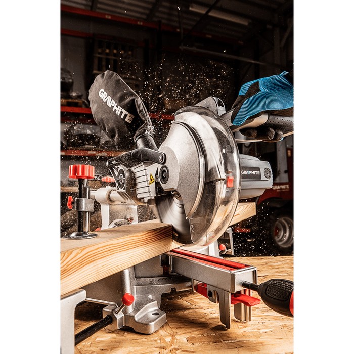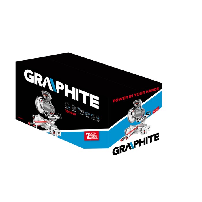 Торцовочная пила GRAPHITE 59G806, 1800 Вт, 210х30 мм, 4800 об/мин, ±45º, 3 м, лазер