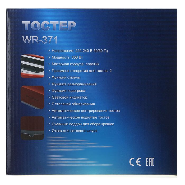 Тостер Winner WR-371, 220/240 В, 50/60 Гц, 850 Вт, 7 степеней обжарки