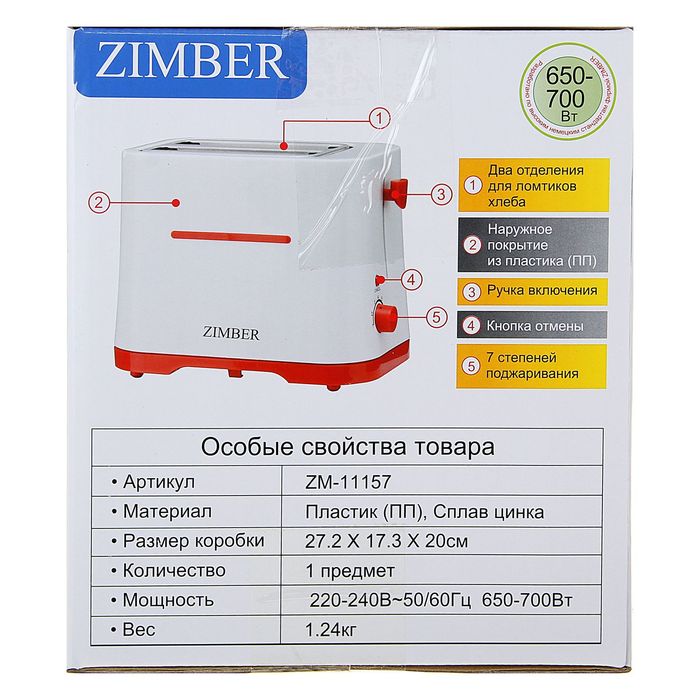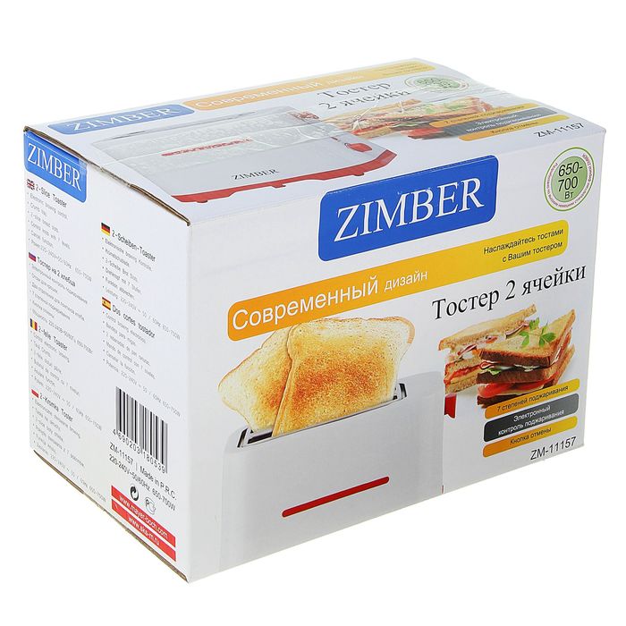 Тостер Zimber ZM-11157, 700 Вт, 2 секции, 7 степеней обжарки