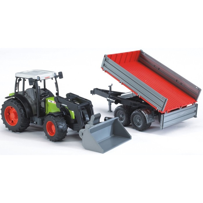 Трактор Claas Nectis 267 F — незаменимый помощник на любой ферме. Он оснащён вместительным прицепом с откидывающимися бортами. При желании его можно отсоединить от фаркопа и поставить с помощью опор. Откройте люк водительской кабины и вставьте специальный удлинитель руля в приборную панель. Теперь управлять транспортом можно самостоятельно!
