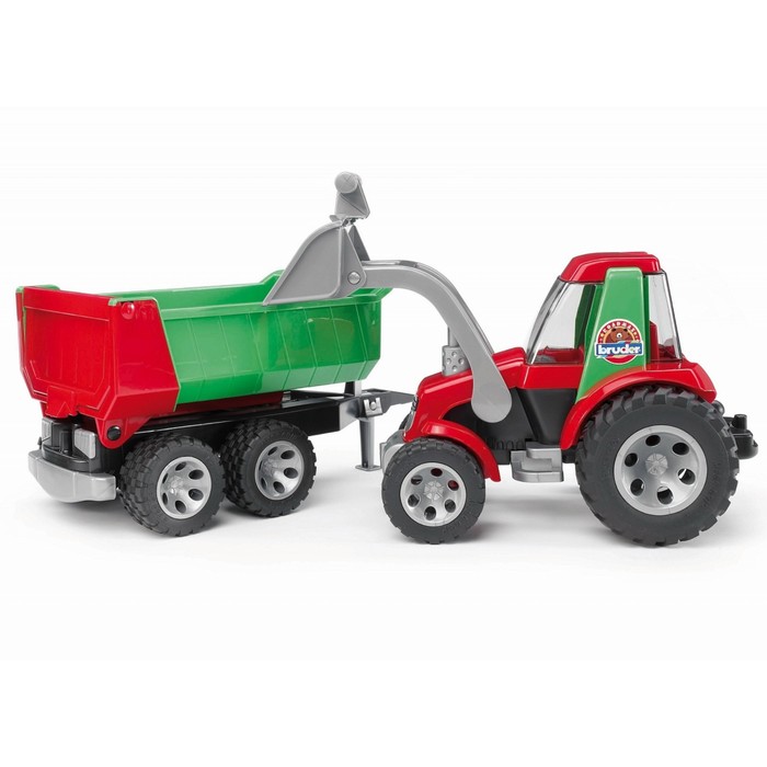 Трактор ROADMAX оснащён подвижным ковшом с ручкой для игр в песочнице. Отсоедините прицеп, чтобы заполнить его камушками или сыпучими смесями. Опрокиньте кузов назад, и всё содержимое аккуратно скатится на пол. Лобовое стекло транспорта можно распахнуть, чтобы посадить водителя.