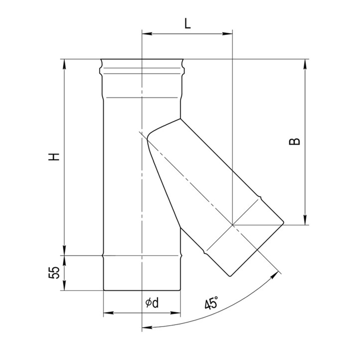 Тройник Феррум угол 135°, нержавеющий 430/0,8 мм, d 150 мм, по воде