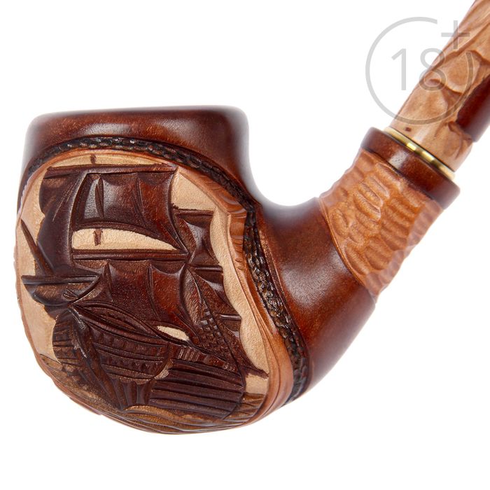 Трубка курительная "Гусар с кожей фигурный" корабль