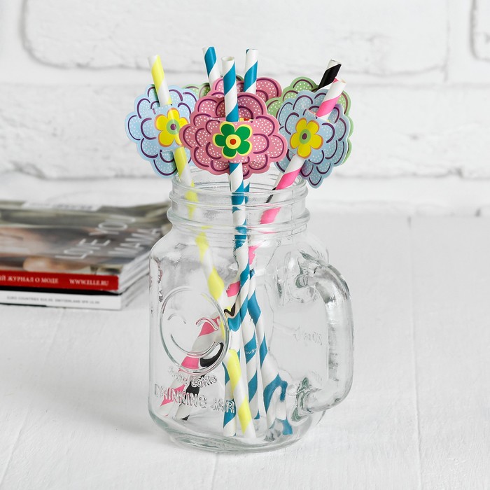 Трубочка для коктейля "Цветочек", набор 6 шт., цвета МИКС