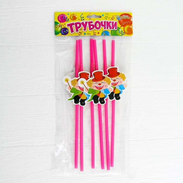 Трубочка для коктейля "Клоун" с волшебной палочкой, набор 6 шт.