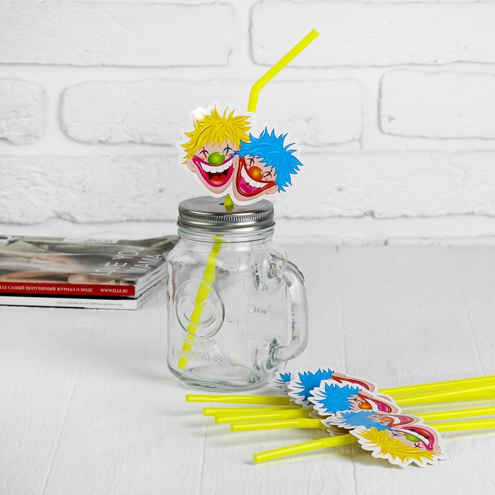 Трубочка для коктейля "Клоун - яркий нос", набор 6 шт., цвета МИКС
