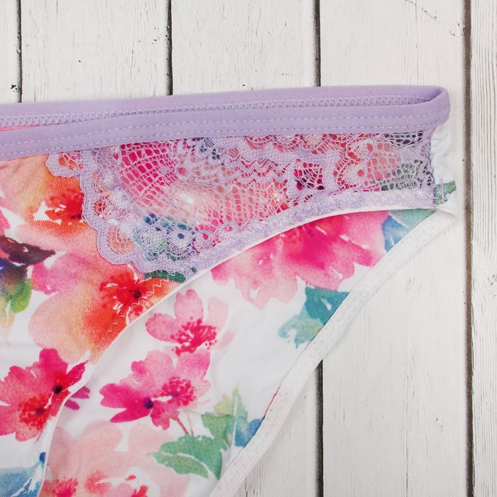 Трусики-слипы выполнены из нежного микроволокна. Они украшены романтичным цветочным принтом и дополнены кружевными вставками по бокам.