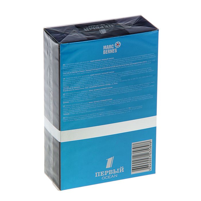 Мужская туалетная вода Marc Bernes «Первый» Ocean состоит из лёгкой композиции со свежими переливами зелени.