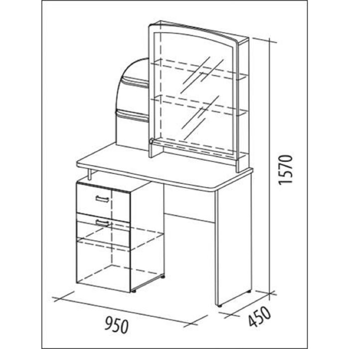 Туалетный стол «Орхидея 4.10» преобразит вашу спальню. Он оснащён полками с металлическими ограничителями и нишами за дверцей. Храните на них косметику и украшения.