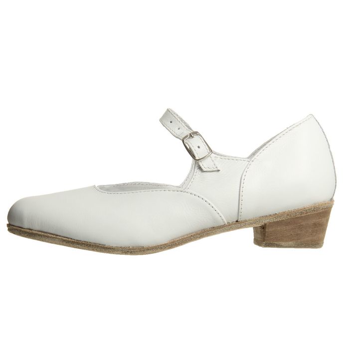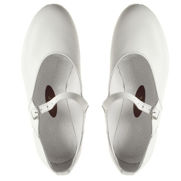 Туфли подходят для занятий народными танцами. Натуральный материал позволяет ноге дышать. Застёжка с пряжкой регулирует посадку изделия.