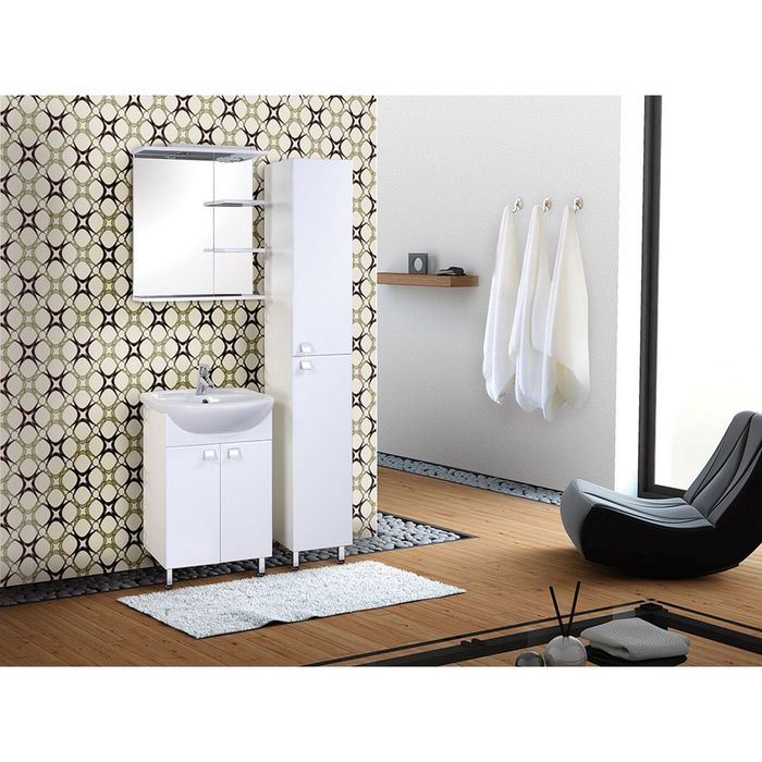 Комплектация: раковина «Эрика-55», 550 х 180 х 452 мм.Наполнение: 1 съёмная полка ЛДСП.