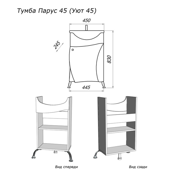 Тумба «Парус 45» — стильное и практичное приобретение для вашей ванной комнаты. Как показано на фото, данная модель выполняет функции шкафа для гигиенических принадлежностей.