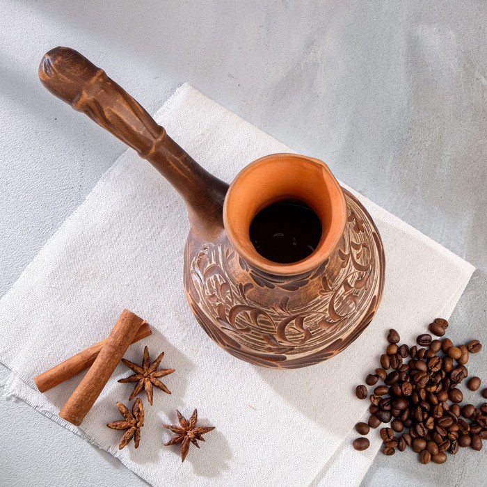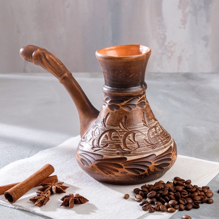 Турка для кофе "Узор" красная глина ангоб микс