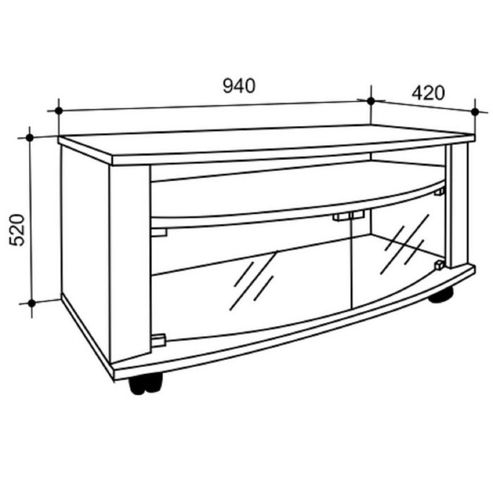 Тумба под ТВ имеет дополнительные полочки для хранения дисков, журналов.