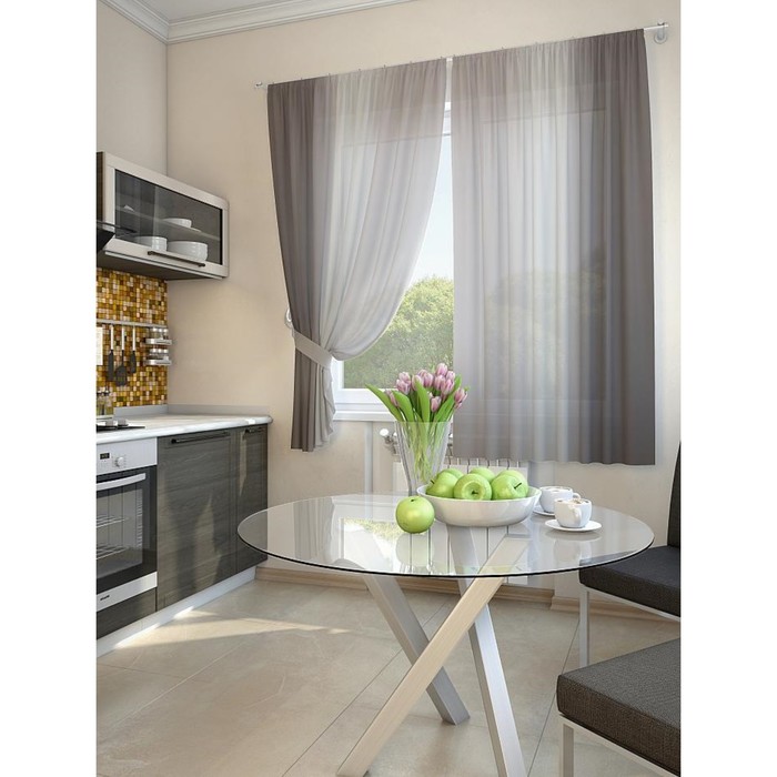 Тюль для кухни «Хроа», цвет серый, размер 150 х 180 см. — 2 шторы и 2 подхвата