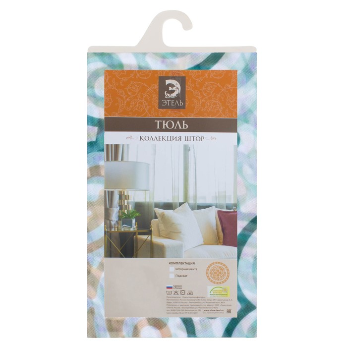 Тюль "Этель" Дамаск цвет зелёный 200х250, вуаль, 100% п/э