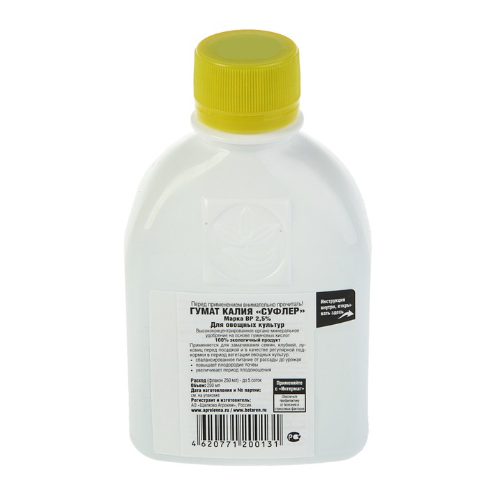 Удобрение органо-минеральное Гумат калия "Суфлер", овощные, флакон, 250 мл
