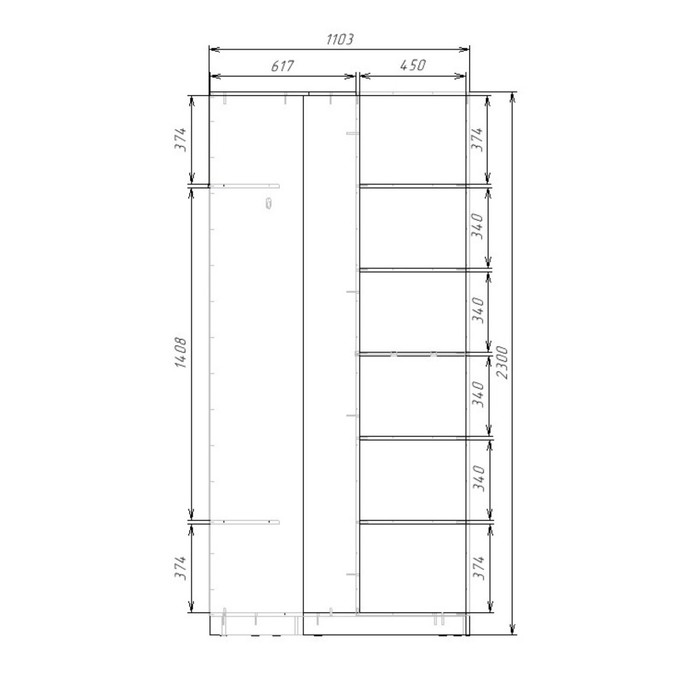 Угловой шкаф-купе Хит-У-23-4-15, 2300х1103х1103 ЛДСП+зеркало Ясень шимо тёмный