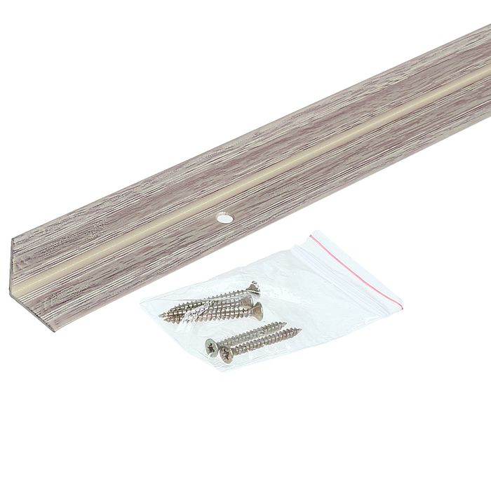 Имеет отверстия для крепления со ступенью, в комплекте идут дюбель-шурупы, которые обеспечивают надёжную сцепку. Порог упакован в индивидуальную термоусадочную плёнку и оснащён пластиковым держателем.