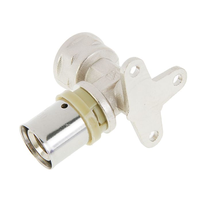 Изделие предназначено для соединения металлопластиковых труб и запорной арматуры с наружной резьбой под углом 90 градусов в одну систему водоснабжения. Герметичность монтажа обеспечивается деформацией стальной втулки, которая происходит при сдавливании фитинга пресс-клещами.