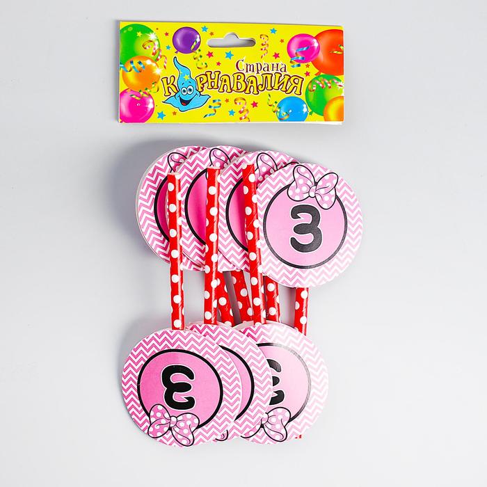 Украшение для торта "3" цвета МИКС (набор 6 шт)