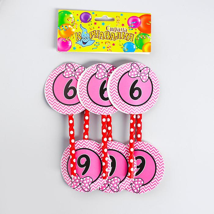 Украшение для торта "6" розовый цвет (набор 6 шт)