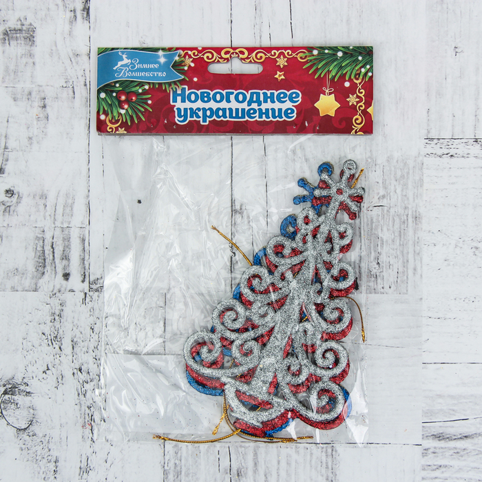 Украшение ёлочное "Ёлка ажурная" блеск (набор 4 шт) 10*14 см, микс