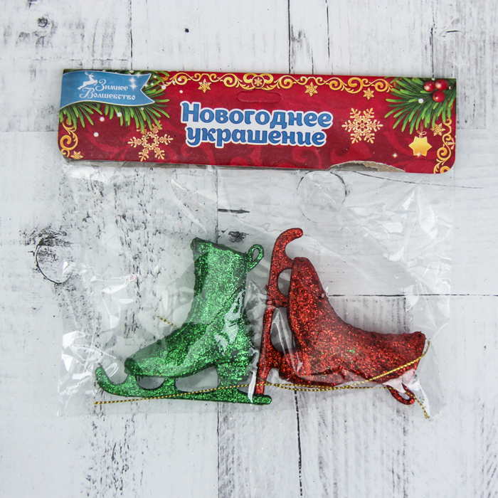 Украшение ёлочное "Коньки" блеск (набор 2 шт) 8*7,5 см, микс