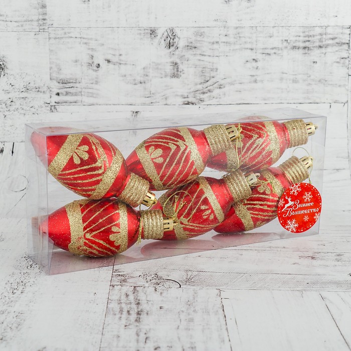 Украшение ёлочное "Лампочки" (набор 6 шт) 5*11,5 см, красный с золотом