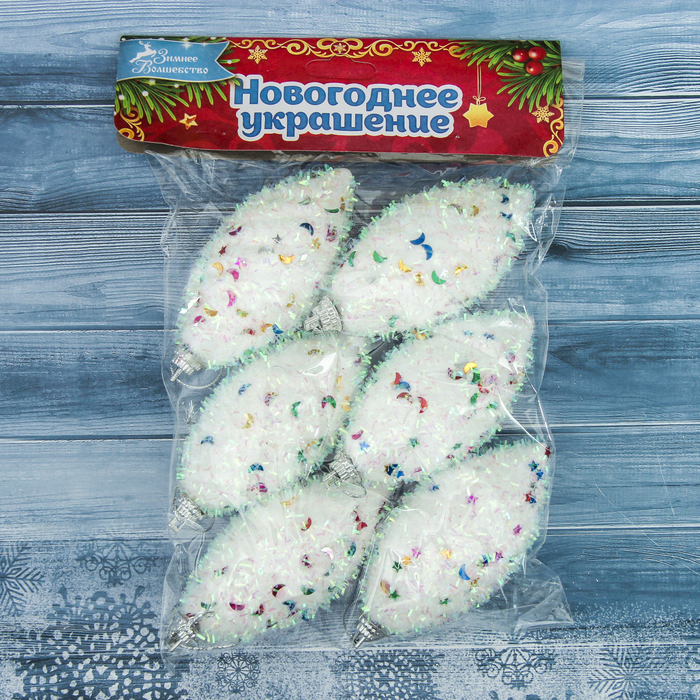 Украшение ёлочное "Сосульки" разноцветные блёстки (набор 6 шт) 4*8,5 см