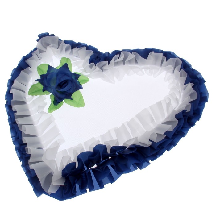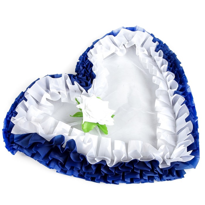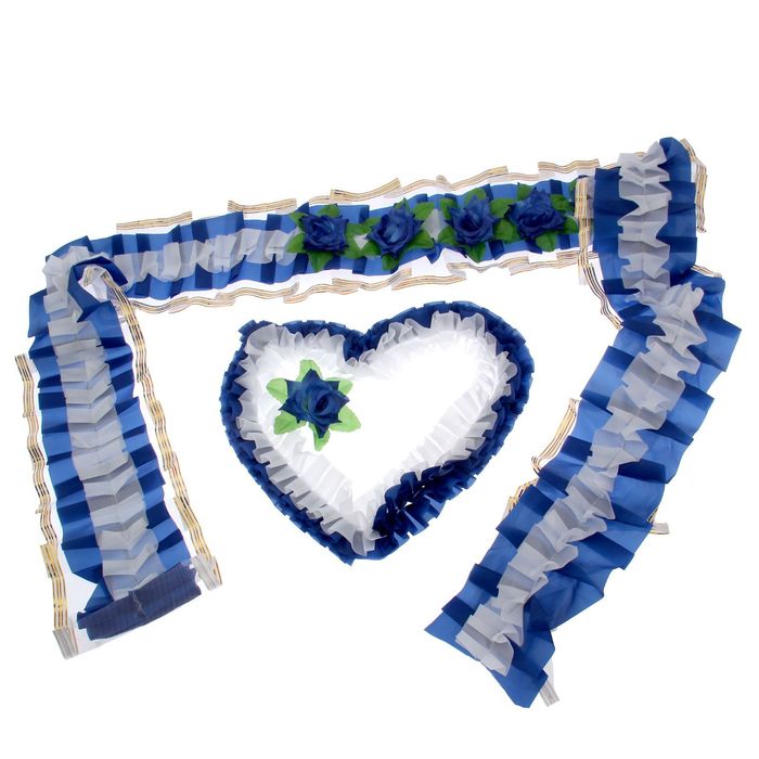 Украшение на капот "Лента и сердце", белый/синий, золотая каёмка