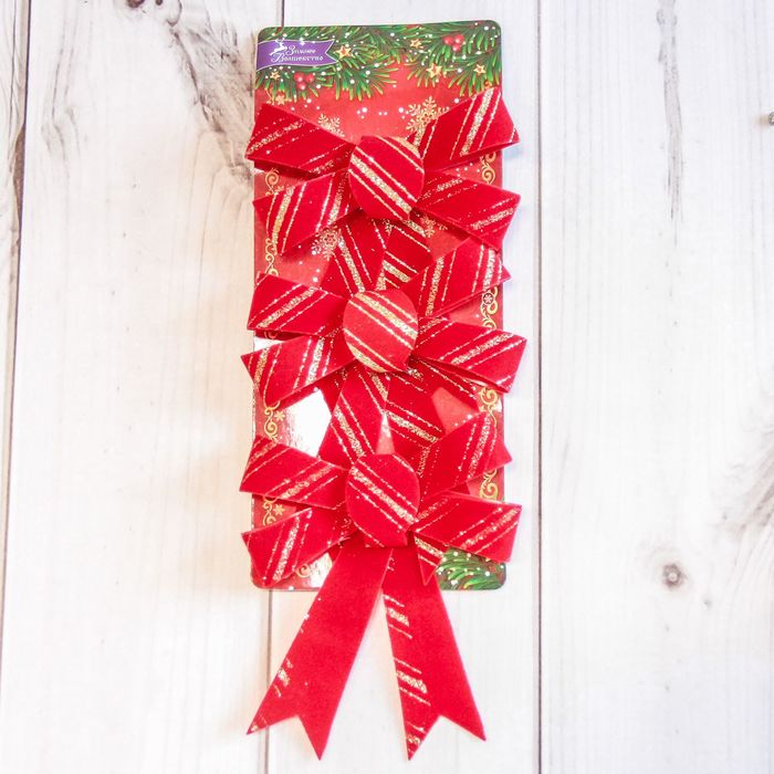 Невозможно представить нашу жизнь без праздников! Мы всегда ждём их и предвкушаем, обдумываем, как проведём памятный день, тщательно выбираем подарки и аксессуары, ведь именно они создают и поддерживают торжественный настрой. Украшение новогоднее "Бант" красные с золотыми полосками (набор 3 шт) 9*10 см — это отличный выбор, который привнесёт атмосферу праздника в ваш дом!