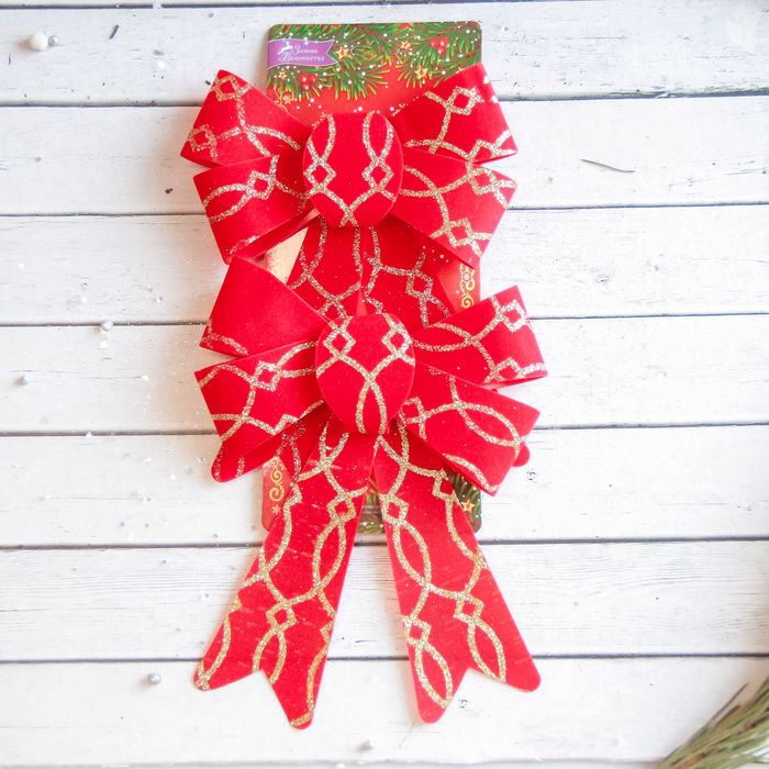Украшение новогоднее "Бант" красный с золотинками (набор 2 шт) 14*16 см