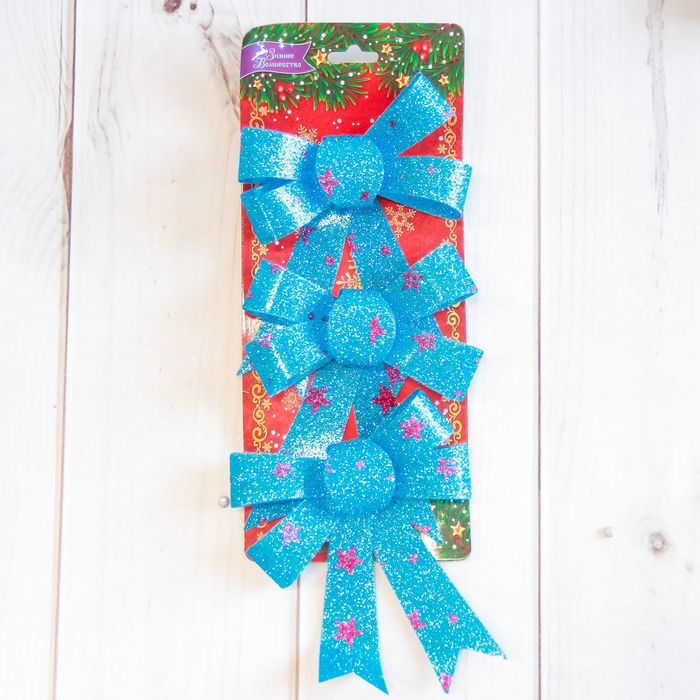 Невозможно представить нашу жизнь без праздников! Мы всегда ждём их и предвкушаем, обдумываем, как проведём памятный день, тщательно выбираем подарки и аксессуары, ведь именно они создают и поддерживают торжественный настрой. Украшение новогоднее "Бант" синий со снежинками (набор 3 шт) 9*10 см — это отличный выбор, который привнесёт атмосферу праздника в ваш дом!