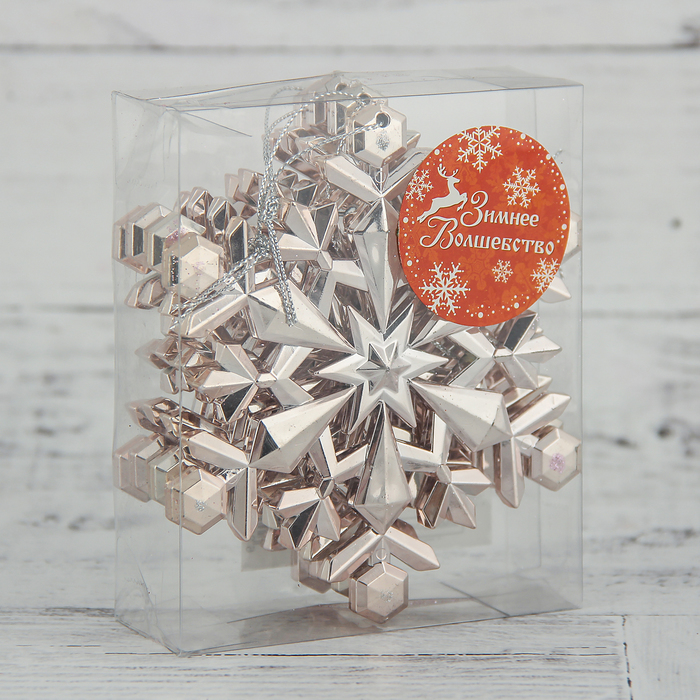 Украшение новогодние пластик 4 шт 11,5*10 см снежинки серебро