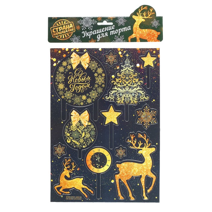 Украшения для торта "С Новым годом", олень, набор: 6 топперов + декор