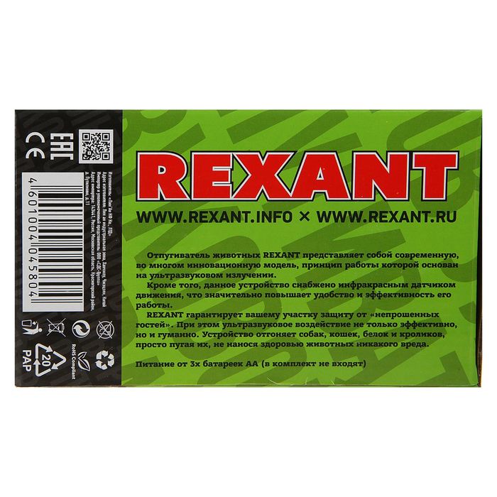 Ультразвуковой отпугиватель Rexant 71-0039, универсальный, 3 Вт